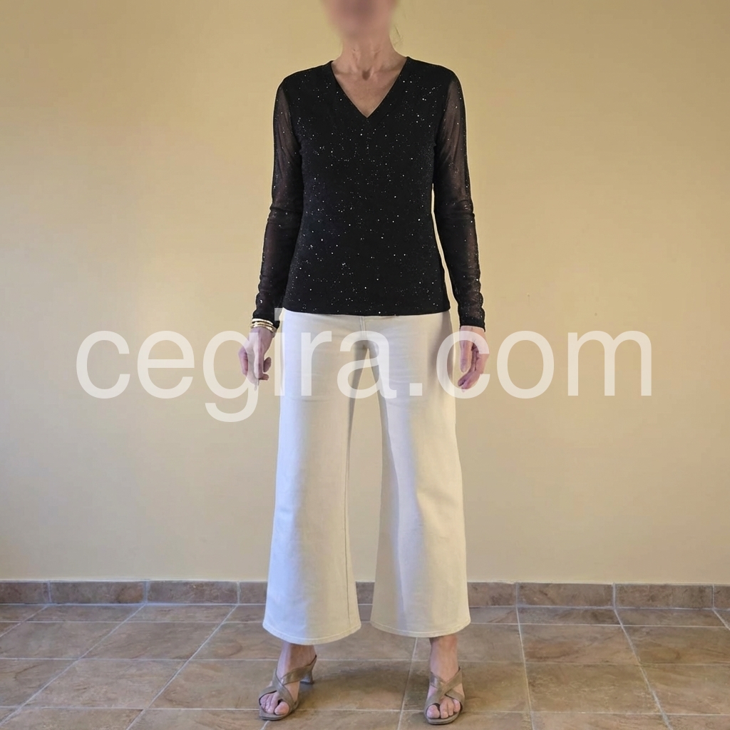 Elevate your wardrobe with this Black Sparkle Sequin V-Neck Long Sleeve Top. Designed with shimmering sequins and a flattering V-neckline, it effortlessly combines sophistication and glamour. The long sleeves provide a balanced silhouette, perfect for evening events or festive occasions. This top delivers both eye-catching style and comfortable wear, making it a versatile choice for any chic ensemble.
