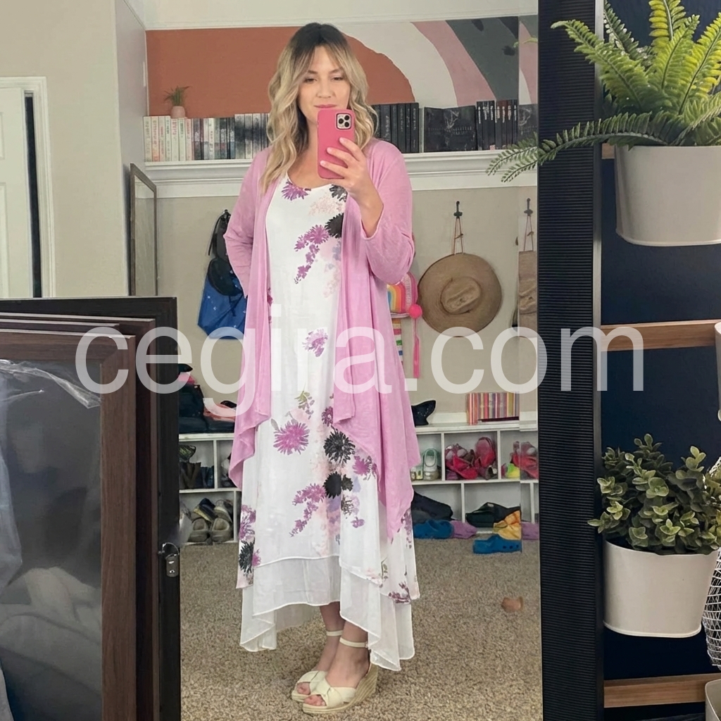 Upgrade your wardrobe with our Chic Floral Print Midi Dress! This versatile piece comes with a stylish outerwear, perfect for any occasion. The elegant floral print adds a touch of sophistication, while the mid-length design provides both comfort and style. Elevate your fashion game with this must-have dress.