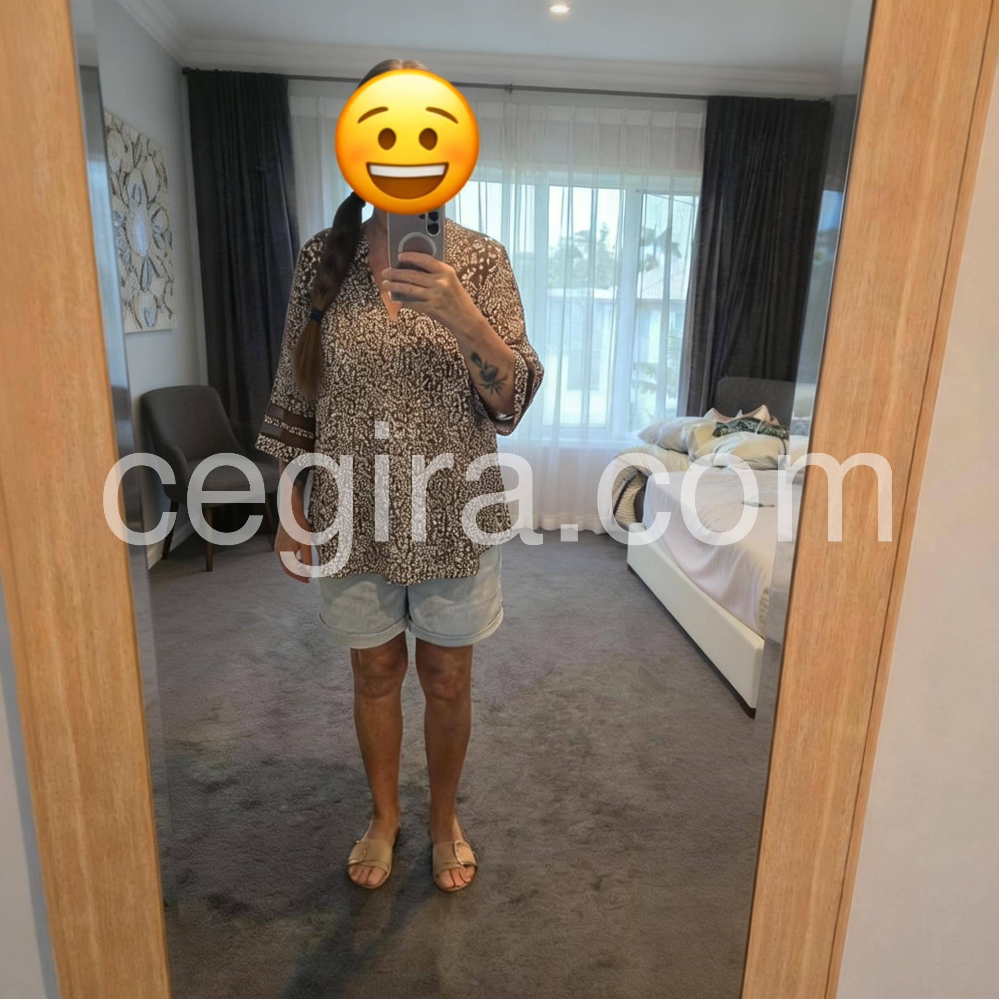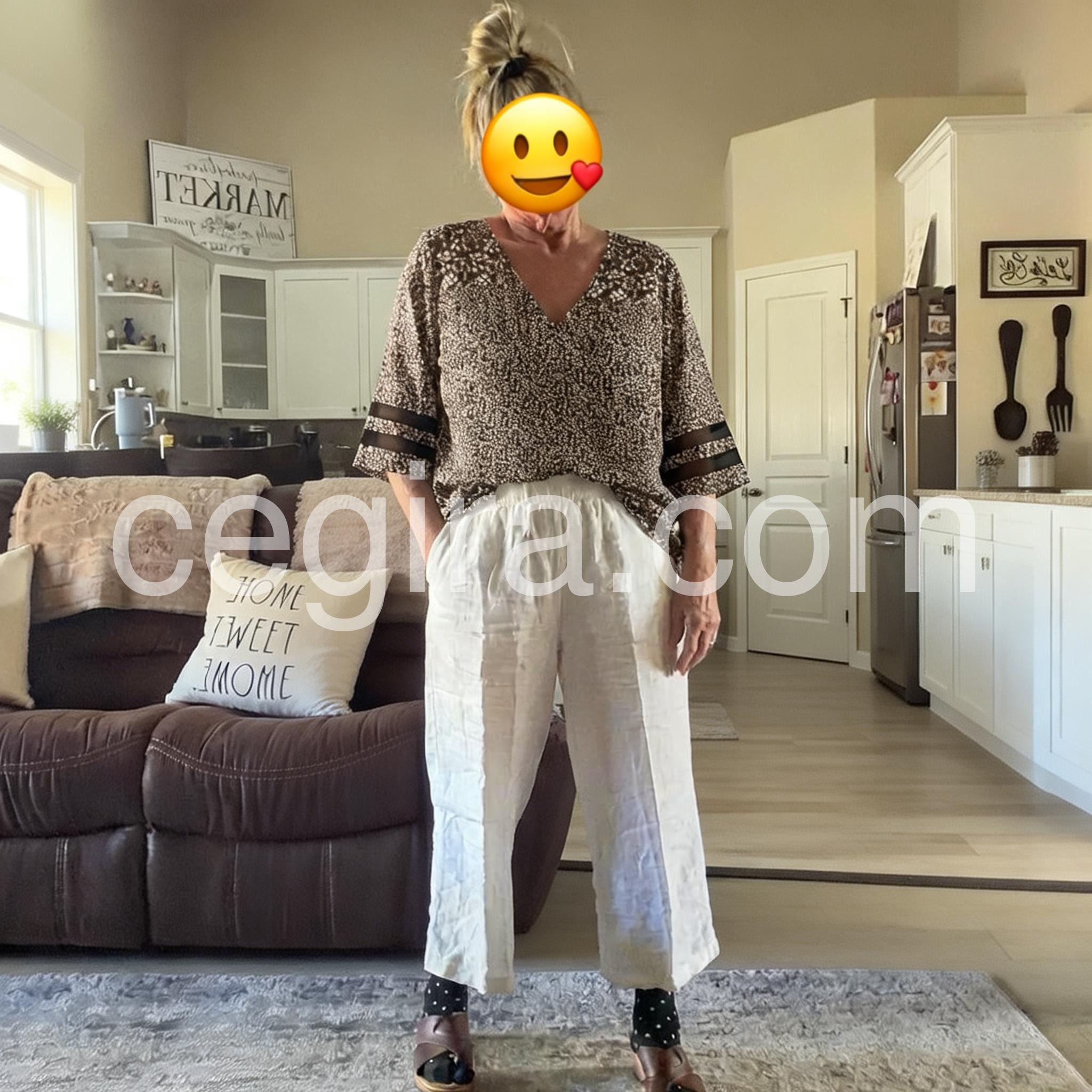 I WORE IT TO WORK TODAY WITH WHITE CROP PANTS AND PALE TAN FLATS, AND PEARLS. GOT COMPLIMENTS. SLEEVES ARE PERFECT LENGTH, COVERAGE. VERY COMFY AND COOL WITH TODAY'S HOT DAY. I ORDERED AN XL AS I LIKE THINGS THAT A LITTLE \\\"BILLOWLY\\\" BUT COULD HAVE USED THE LARGE INSTEAD, BUT IT STILL WORKS. I WOULDN'T MIND HAVING ANOTHER COLOR IN MY CLOSET OF THE SAME SHIRT! hmmmmm :)